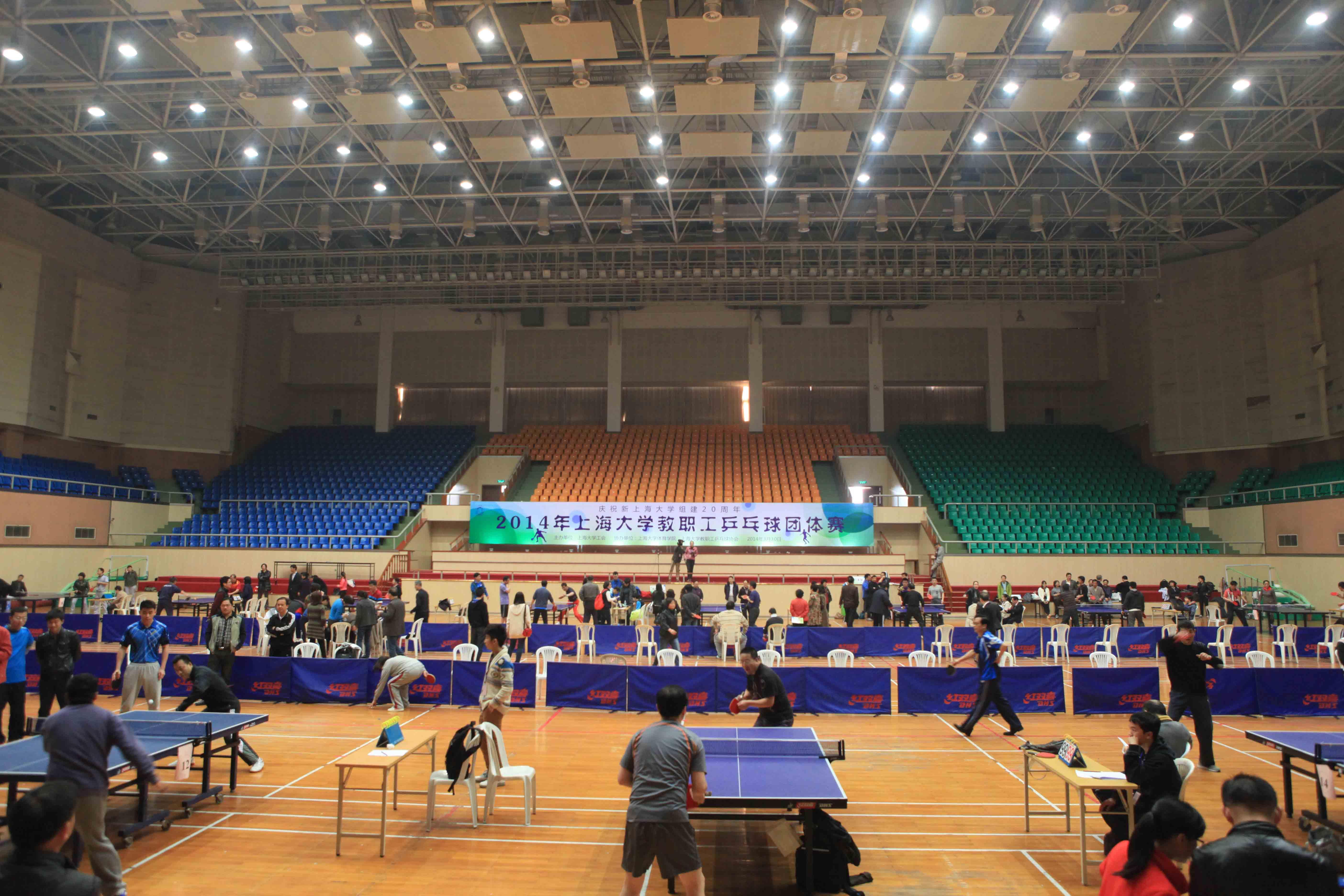 为迎接新上大组建20周年,促进我校科学发展,增强广大教职工的身体素质,丰富教职工业余文化生活,3月30日,来自全校31个学院(系统)的27支参赛队伍在校本部体育中心体育馆为我校师生带来了一场精彩绝伦的乒乓球比赛。比赛从早晨8点持续到下午5点,经过一轮轮激烈的角逐,离退休教工队,出版社、新成高联合组队,国交、社会学院联合组队夺得了本次赛事的冠亚季军。赛场上呐喊声、助威声、喝彩声此起彼伏,为这春光明媚、百花盛开的三月校园增添了无限的生机与活力。