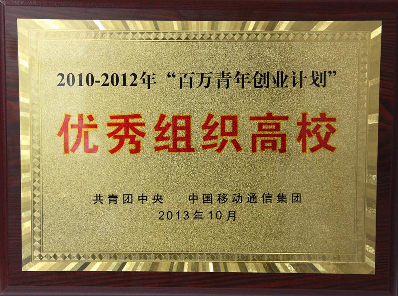 会上表彰了在“百万青年创业计划”工作中表现突出的集体,我校荣获2010-2012年“MM百万青年创业计划”全国优秀组织高校奖。