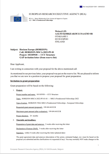 经过欧洲研究委员会的严格评审,力学与工程科学学院土木工程系青年教师柳扬清获得欧盟“玛丽·居里学者计划”项目资助,资助金额199694欧元,资助期24个月。柳扬清博士将与芬兰阿尔托大学(Aalto University)的Prof. Weiwei Lin、香港科技大学(HKUST)的Prof. Jishen Qiu开展主题为“A new CCU composite structure with a novel demountable connection towards CO2 sequestration and material recyclability”的联合研究。该项目旨在基于氧化镁水泥基复合材料和一种高效可拆卸连接构造,开发一种高固碳、自愈合、材料可循环利用的新型组合结构。