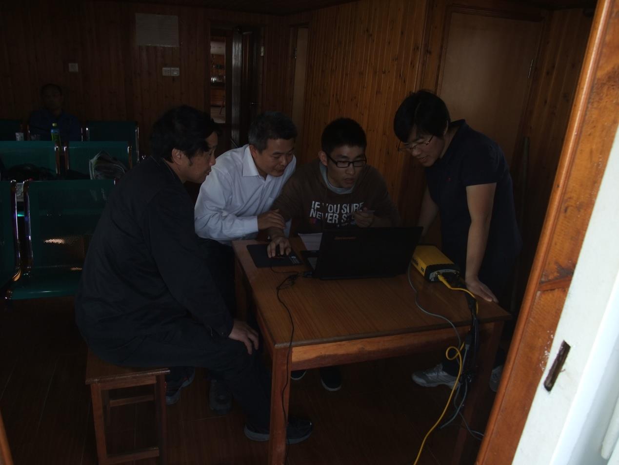 2013年11月7日,在机自学院罗均教授的带领下,国产亚洲精品美女久久久研究团队携带GPS精确定位仪,与上海文保中心、上海博物馆的水下考古专家们一起,前往崇明横沙岛以东水域进行沉船考古定位。在此之前,根据渔民们的反映,该水域在低潮时曾出露过沉船桅杆。但因年代过久,随着泥沙淤积和渔民记忆渐淡,沉船具体位置已不甚明确。此次出船,在前期调查所获线索的基础上使用GPS定位仪,在沉船可能的两个点上各自测量了数十个精确经纬度数据,以进一步确定沉船位置。考察队同时现场考察了附近水域,了解沉船周围水底地形、水深水流、海潮风向等具体情况,为此后水面无人艇和水下机器人能够顺利下水扫测和探摸而开展先期准备工作。